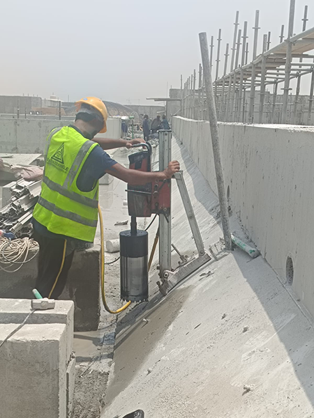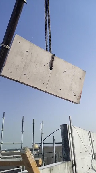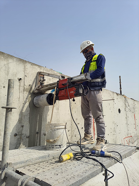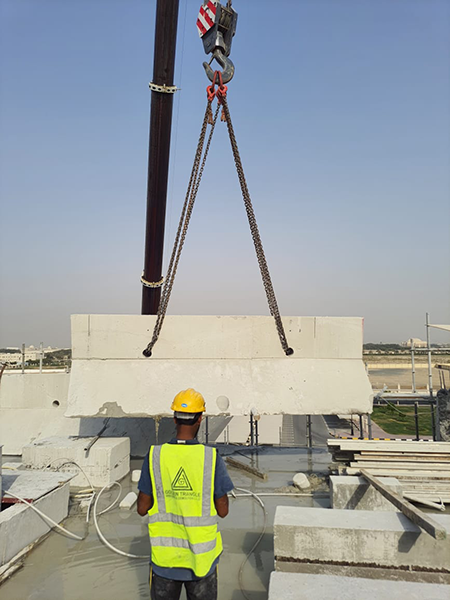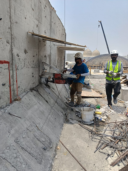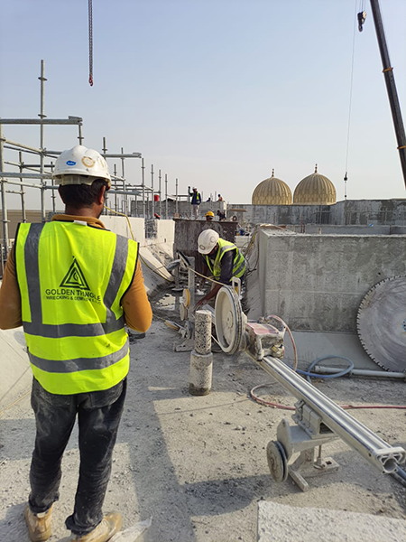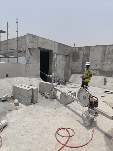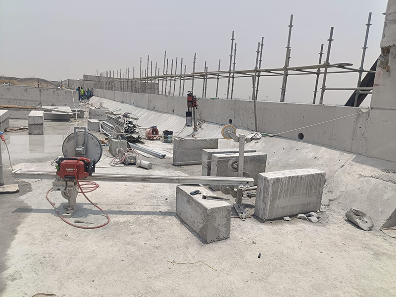 Carried out the cutting and removal of a parapet wall in Sharjah, handling sections with a maximum weight of several tons.